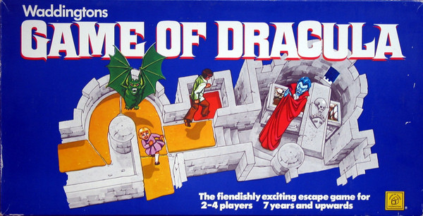 "A fiendish game of suspense and fun! Players plot their escape from Dracula's castle and move stealthily towards the exit. But beware! Dracula prowls the castle looking for a victim..."