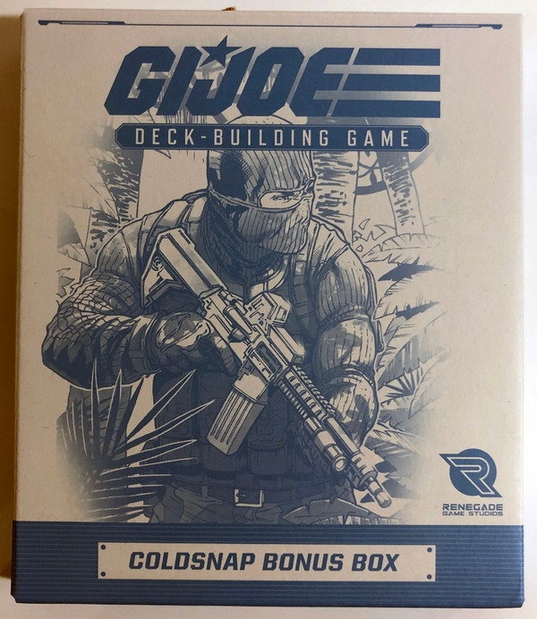 A promo pack for G.I. Joe Deck-Building Game containing a new player leader (Beach Head), and a buildable punchboard towables yard!