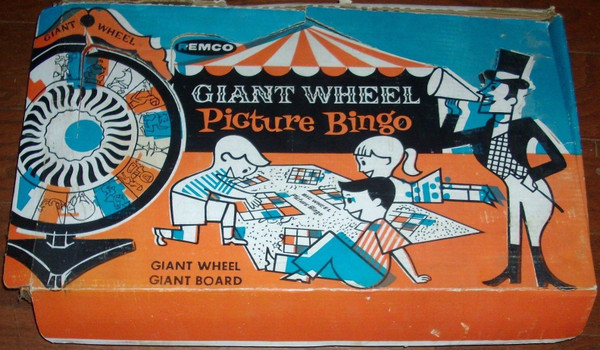 Basically a Bingo game with a "spin." The six 4x4 playing boards are printed onto a large roll-up mat. Rather than a blind draw, on his turn each player spins a wheel to find the picture he can cover up. First person to complete a line of 4 wins. on his board wins.