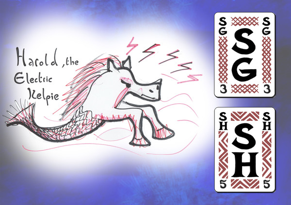 A judge draws cards to help inspire a fictional character. One card gives the first letter of the character's name, the other card gives the first letter of a profession, species, or other descriptor.