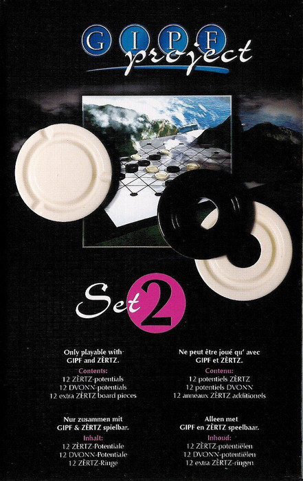 This expansion can integrate DVONN and ZÃRTZ with the original GIPF game. Additionally, it contains ring pieces to extend the ZÃRTZ board into new configurations.