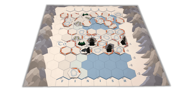 A ‘take-that’ fantasy themed, tile-laying, route-building, downhill avalanche racing game, featuring a deck of mischief cards that allow 2-6 players to manipulate the board for their benefit and their opponents’ demise.