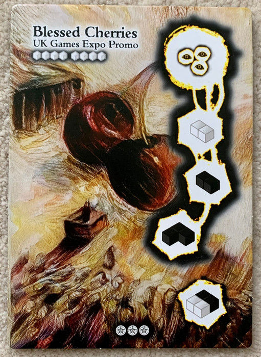 Dark Board text: “You sense a Demonic presence! Whilst walking the hallways of UK Games Expo, you can taste the sweetness in the air! It must be the Cherry-Demon who in exchange for some resources will grant you its powers!”