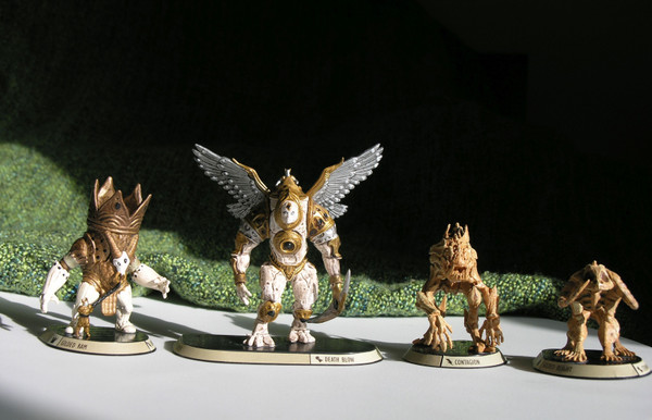 The ostentatious golems of The Gilded Band cause many to underestimate them - a mistake few survive. For beneath the gold plating is a devious and battle-hardened elite unit. Regimental commander Ramaka uses misleading showmanship to his advantage on the battlefield, as well as in the court of his sponsor, Princess Dasra.