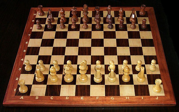 Grand Chess is a variant played on a 10x10 board with two additional pieces; the Marshall (which combines the movement powers of the rook and knight, it's also called Chancellor) and the Cardinal (which combines the movement powers of the bishop and knight, it's also called Archbishop).