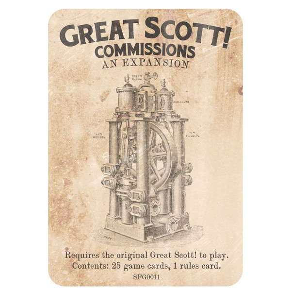 A mini-expansion for Great Scott! - The Game of Mad Invention, Commissions adds 24 new cards and a new way to score.