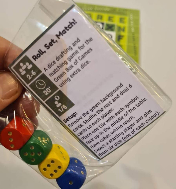 A dice drafting and matching game for the Green Box of Games using extra dice.