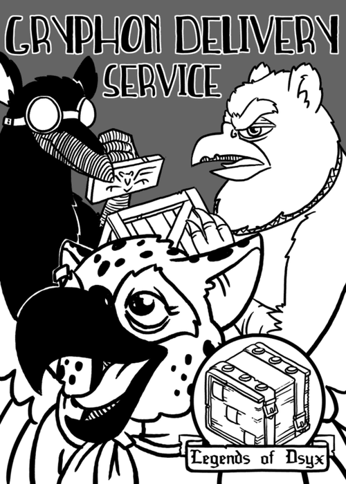Gryphon Delivery Service is a solitaire roll-and-write game where players attempt to move three characters -- gryphon couriers -- along a track from start to finish, while picking up and dropping off various items to turn a profit. Each space either yields an item, allows an item to be sold, or represents an encounter with one of the Dsyx world's various races that can offer players a windfall... or catastrophe. Instead of being sold outright, items can also be used instead to influence various markets, raising prices for (hopeful) future sales. Players must manage each of their characters, their special abilities, and their inventories well, because as soon as the first character reaches the end of the track, the game is over, and any items that were left undelivered represent lost opportunities to make precious gold.