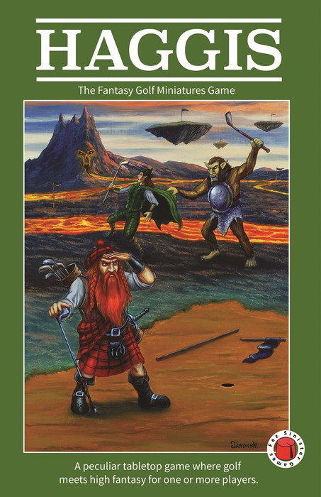 HAGGIS is a casual "beer and pretzels" style miniatures game about playing golf in a high fantasy world. Players will: create heroes, hire caddies with various special abilities, acquire equipment and magical upgrades. All in an effort to best other players and avoid monsters and hazards on a tabletop fantasy golf course of your design!