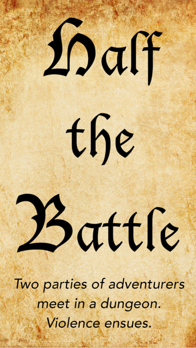 Half the Battle is a tactical game of positioning pieces and making difficult choices, with characters inspired by Dungeons and Dragons. All moves and actions are open, and each player has broadly the same opportunities and options, so you win or lose on the strength of your choices not the roll of the dice. The gameplay involves very little luck at all, using dice to track hitpoints and available actions but not for rolling outcomes. With the addition of some randomly chosen items from the bag of holding, there's just enough luck to keep things interesting without overpowering the satisfaction of a well-executed strategy.