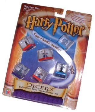 The dicers game is played with collectible dice. These have 5 clear sides, with a figure representing the character inside of the dice. The sixth side is solid, and shows the name of the die, its "casting number", its special ability, and its affiliations. The clear sides are numbered from 1 to 5, while the solid face is the '6'. Each die represents a character or item from the Harry Potter stories.