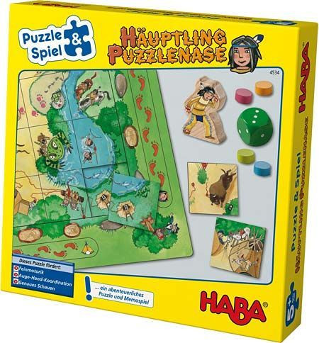 In Häuptling Puzzlenase only sharp eagle eyes and a good memory can help you remember and find all that the Indian boy is looking for.