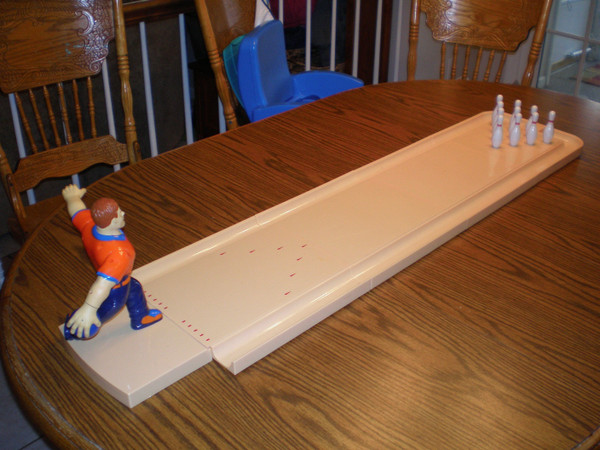 Experience the thrill of bowling a perfect game with the HEADBANGERS Big Strike. Adjust his hand to aim the ball and bang his head to bowl. This bowler comes with his own lane, bowling ball, 10 bowling pins and scoreboard.