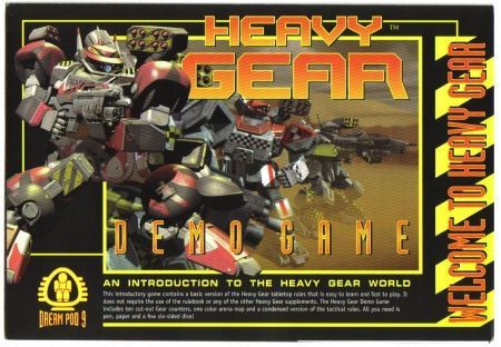 This introductory game contains a basic version of the Heavy Gear tabletop rules that is easy to learn and fast to play. It does not require the use of the rulebook or any of the older Heavy Gear supplements. The Heavy Gear Demo Game includes ten cut-out Gear counters, one color arena map and a condensed version of the tactical rules. All you need is pen, paper and a few six-sided dice!