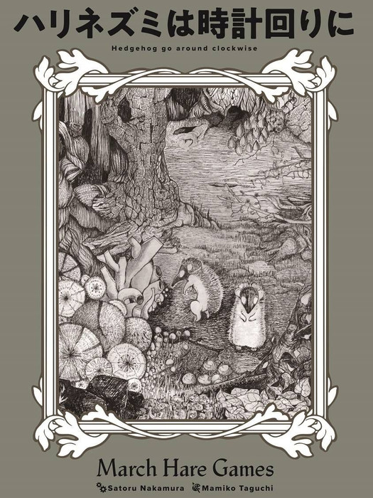 ããªããºãã¯æè¨åãã« (Hedgehog go around clockwise) is a puzzle-like board game from Japan that mixes elements of the traditional game Mancala and drafting dice. The game has polyhedral dice in different colours (d6, d10, d20). Players are alchemistic hedgehogs who go around collecting dice on their spines, to deliver them to their storerooms and laboratories. Each hedgehog has their own circuit, moving dice around in a way similar to mancala games.