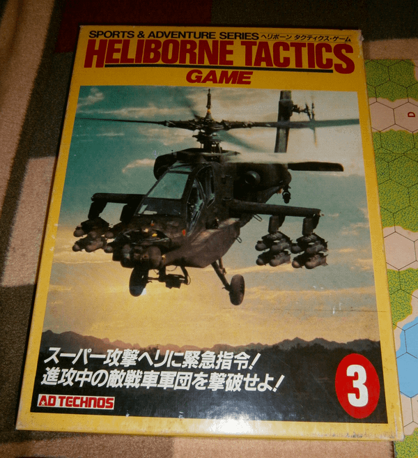 This game simulates helicopter-to-ground combat in the 80's. It is a low complexity game, and the third one in the Sports and Adventure series from Ad Technos.