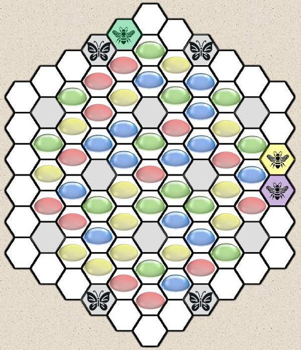 If a Butterfly lands on a hex with a Bee, the Bee’s owner loses a Pollen, which is randomly selected and removed from the game.