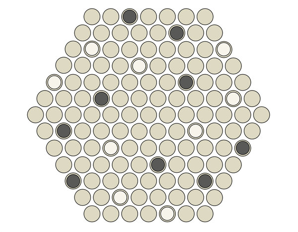 Hex Rampart is a variant of Rampart played on a hex hex board. Play starts with black. On his turn a player may either drop a stone of his color or remove a dead enemy group. Players may only legally drop stones adjacent to at least one of their stones already on the board. A group is considered dead if any stone within it has no adjacent empty cells. Removal of a group takes a whole turn. Removing own dead groups is strictly prohibited. Passing is prohibited unless a player has no legal move on his turn. The player to remove all enemy groups from the board is the winner.