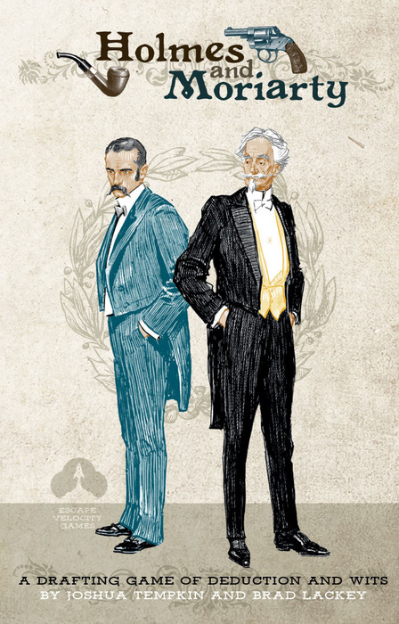 Holmes & Moriarty is an asymmetric two-player drafting game in which players take on these iconic roles. Over a series of hands, players try to win "cases" by drafting crimes and clues drawn from Conan Doyle's stories. Players mark their winning positions on the scenario board. If Moriarty can score three in a row, he can activate his master plan for the win! If Holmes can foil Moriarty's plans, he wins!
