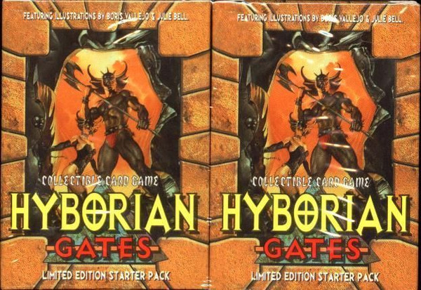 Hyborian Gates is a card game in which players battle for control of six Dimensions. Players develop special decks in which cards work together in powerful and efficient combinations to overtake the enemy.