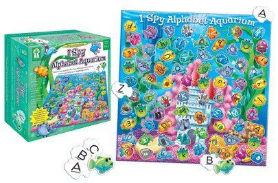 Learn letters and beginning letter sounds by matching colorful fish cards to the correct letters or images on the aquarium game board. Three ways to play: match uppercase letters to each other, match uppercase letters to lowercase letters, or match letters to pictures of things with that beginning letter sound. Includes large game board, game cards, markers, and directions.