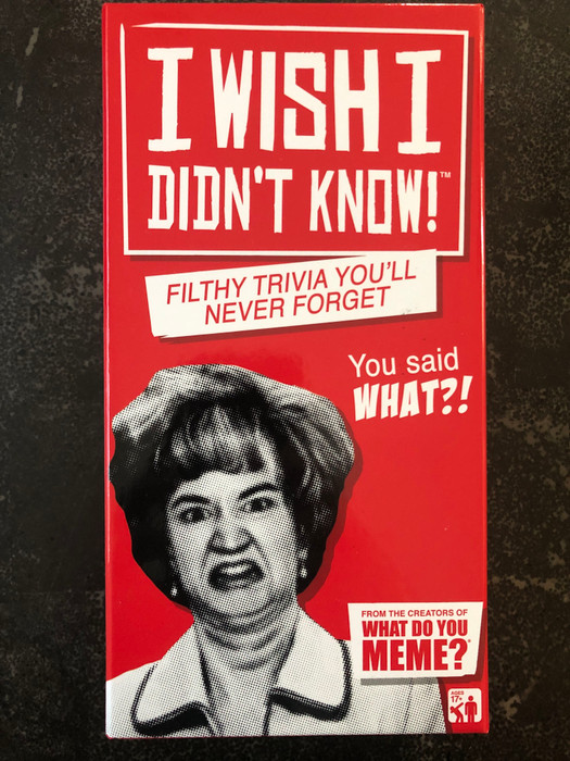 I WISH I DIDN’T KNOW: Compete with your friends and family by guessing which gross fact is actually true. Just read off the answer choices and hear your audience groan! By the end, you’ll all be experts on all things you wish you didn’t know. Brought to you by the creators of What Do You Meme.