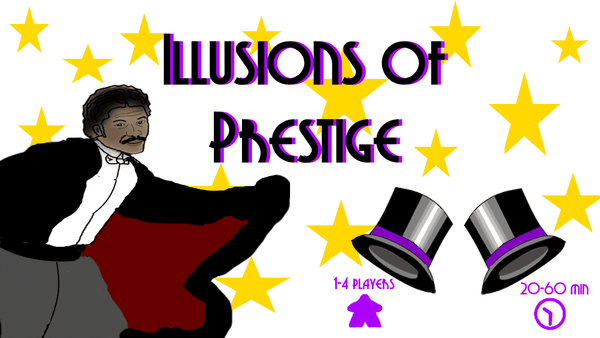 In the trick-taking game Illusions of Prestige, the magician players battle it out on stage with their best tricks, with the winner of a trick receiving points while losers gain support from apprentices and gather props to use for rule-breaking illusions.