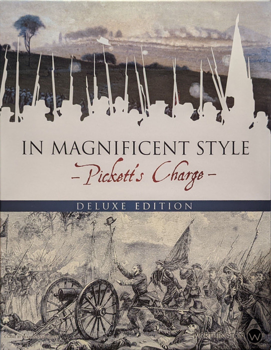 In Magnificent Style: Pickett's Charge at Gettysburg is a Solitaire-only Tactical level board-wargame depicting the final desperate Confederate attack on 3 July 1863 at the Battle of Gettysburg, popularly known as Pickett’s Charge. As General Longstreet, you must decide how quickly to press your troops across this deadly open ground before allowing the men to regroup for another bound. But time is not on your side, and the longer your stalwart soldiers remain in this maelstrom of enemy fire.. the more dangerous it becomes, and the less likely they will arrive with the verve and numbers required to carry the day.