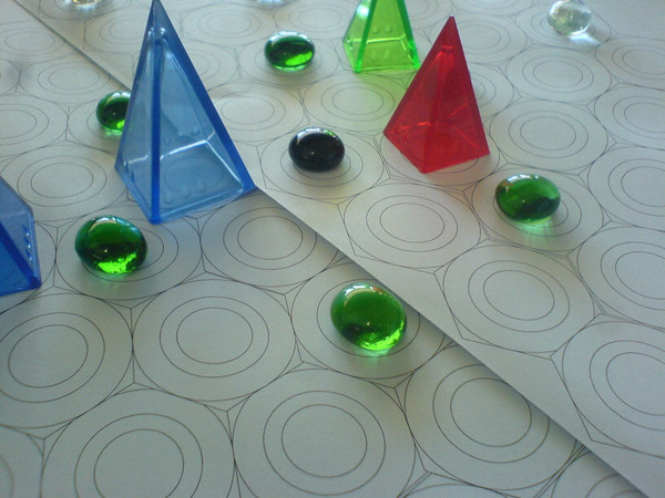 Influence is an Icehouse game of push and pull in which players play pyramids onto a hexagonal grid to exert influence on stones of three colors.