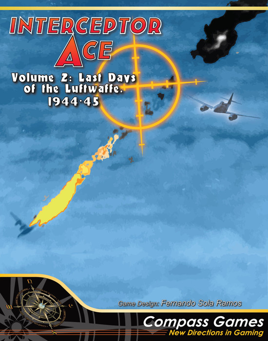 Interceptor Ace, Volume 2: Last Days of the Luftwaffe, 1944-1945, designed by Fernando Sola Ramos, is a solitaire, tactical level game which places you in command of a German day fighter during the last days of World War II. This is the sequel to the popular, action-packed Interceptor Ace 1943-44, designed by Gregory M. Smith, and picks up the action where Interceptor Ace 1943-44 left off. Each turn consists of several days, during which a combat mission will be flown from one of many bases in Europe, attempting to intercept incoming American Bombers and defend from their escorts. There is a strong narrative around the pilot, as you look to increase your prestige, earn skills, and rise in rank through promotion and receive awards.