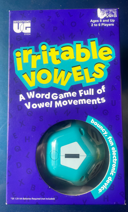 Players create words using consonants on cards combined with vowels on an electronic die that changes (rolls) on its own. A D6 decides how the consonant will be used and you collect cards when submitting a successful word.