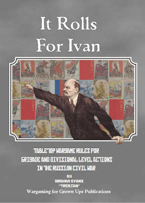 It Rolls for Ivan is a set of table top wargame rules for fighting Brigade-Divisional level actions in the Russian Civil War. The rules are based upon the "For Whom The Dice Rolls" Spanish Civil War rules. They are designed to enable games covering a large area, with sweeping cavalry movements and dogged infantry. Detailed sections cover the uniqueness of the war, from the reluctance sometimes of armies to obey their orders, to Armoured Trains and the various odd looking armoured vehicles employed.