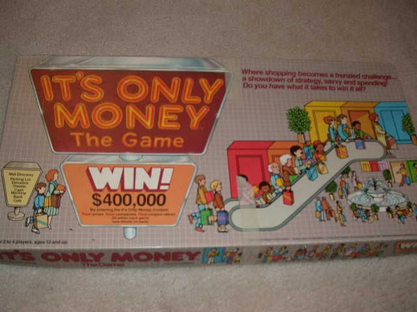 "Shoppers enter the It's Only Money Mall via the spinner and begin shopping, with the aim of acquiring 5 spaces on the It's Only Money Shopping Money Card, while denying opponents' the ability to do the same. Perilous pitfalls and profitable bonus spaces all contribute to the playing excitement. The first player to acquire the five spaces, as well as the $50,000 in game money, is the winner. It's a fast paced game of shopping strategy, savvy and spending. Do you have what it takes to win it all?