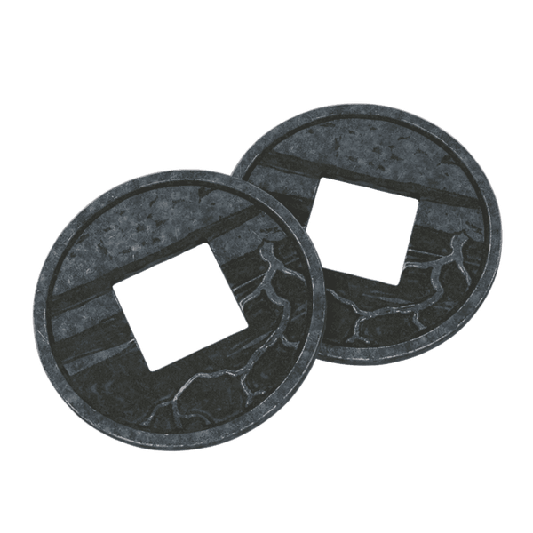 Two storm metal coins with rules to use them as a small expansion bound to the territory connection and the vulnerability of climate change.