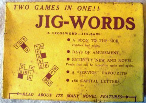 A word game. The pieces have both letters and black squares on them. The objective is to use all your tiles by making a correct Crossword. The player wins if he has used his last tile.