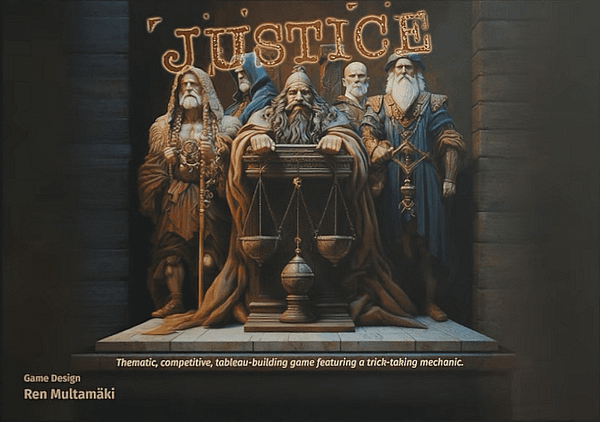 Justice is a competitive, tableau-building game set in the same Dwarven society of Odrixia where Factory 42 is set. Players, as members of the Council of Law and Order, determine the guilt of accused criminals.