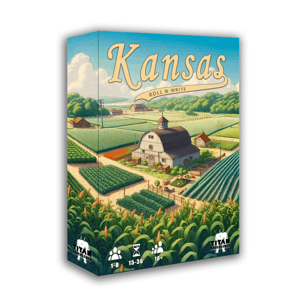 Kansas, where fertile fields, tough choices, and ambitious farm owners come together in this Print & Play roll-and-write adventure! In Kansas: Roll & Write, you’ll build your farm, grow vegetables, upgrade your tools, hire workers, and deliver goods across the state — all with clever dice drafting and placement mechanics.