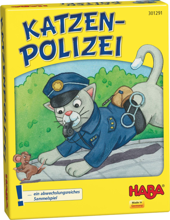 In Katzenpolizei, the players collect the cats! If the die lands on the relevant symbol, then the players take a card and lay it down in front of them on the table. However, sometimes a cheeky mouse or the naughty neighbor's dog throws a wrench in the works and their cats run away. The players' cats are safe only when the whole family is reunited OR when they enjoy the protection provided by the police cat. The aim of the game is to match up as many cats as possible.