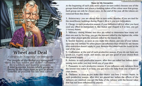 This official scenario for "Kingsburg" allows the players to choose archetype roles each years to specialize their talents.