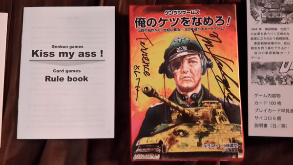 Kiss my ass is a card game on tactical combat in the eastern front 1944. One player plays the Germans and the other the ussr.