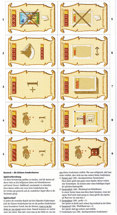 This is an expansion for Knights/Knatsch. 10 extra cards. These cards are smaller than the others. Limited print run of 1500 copies.