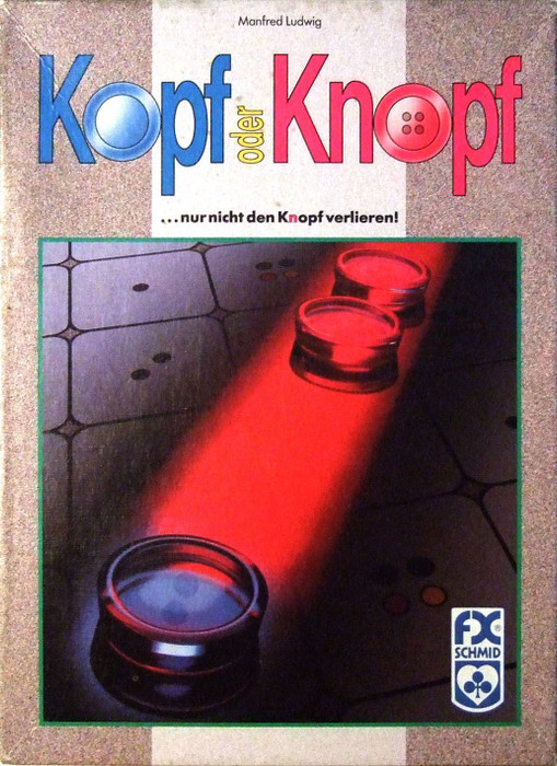 Head or Button is an abstract game for 2 players in which the players' pieces are transparent. The board is a squared grid, the squares having 1,2 or 3 black dots or 4 colored dots which makes the pieces look like buttons. The game involves the pieces moving according to the numbers, individually or in combination.