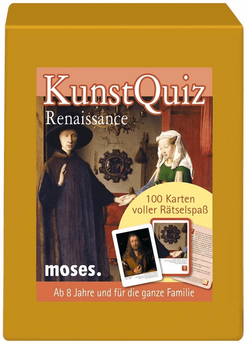 KunstQuiz Renaissance is an exciting journey into the fascinating world of art. Learn the great painters of the Renaissance and their most important works to know! And test Your knowledge of art at home, after visiting the museum or just so in between! In this jam-packed art quiz box you will find: 24 world-renowned painter, 24 selected paintings, 72 detailed image sections, 72 exciting issues, 72 annotated answers and 100 cards with detailed information about the artists, their arts, life and work.