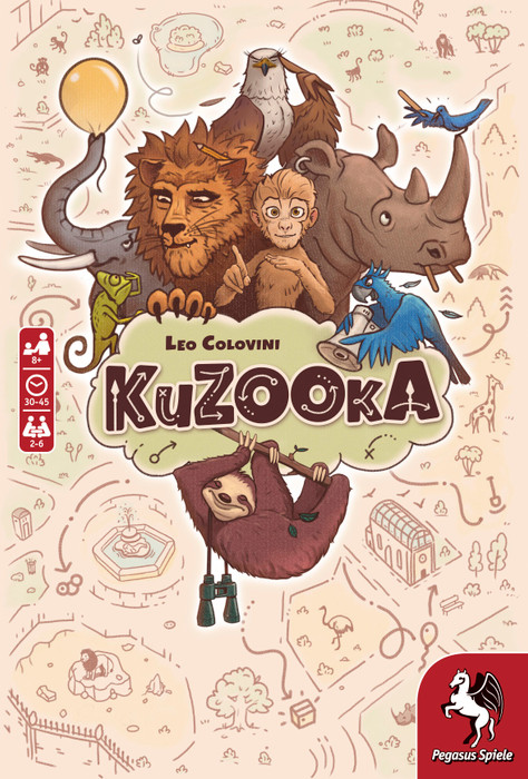 There are multiple ways to escape in KuZOOkA, but you need to work together with the other animals — in secret — to pool the trash left behind by zoo visitors and develop an escape plan that makes use of these items. Each player has one of the ten animal cards with a unique power, and you play on a game board that features a path comprised of spaces in six colors, with each space having a number in it.