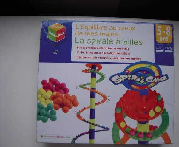The Spiral Ball is a game of balance. The large ramp gradually gets the balls placed by the players according to dice. When a ball is placed, it may cause to land some other balls placed below.