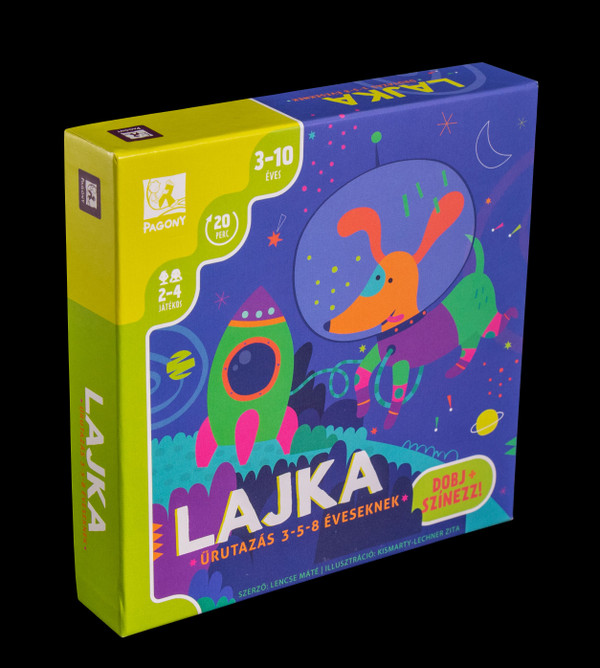 The game Lajka is indeed three different, stand-alone game for diferrent age-groups. Players in their turn roll four (coloured) dice, and than use the result, to colour their sheets. In "Space Critters", (for the youngest ones, above 3 years) you try to find all the matching colours on your critter-sheet. The one, who's finish it first wins the game.