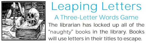The librarian has locked up all the "naughty books" in the library. The books have to make three-letter words that match patterns to collect library cards. The book with the most library cards gets a key card. Five key cards lets the book escape.