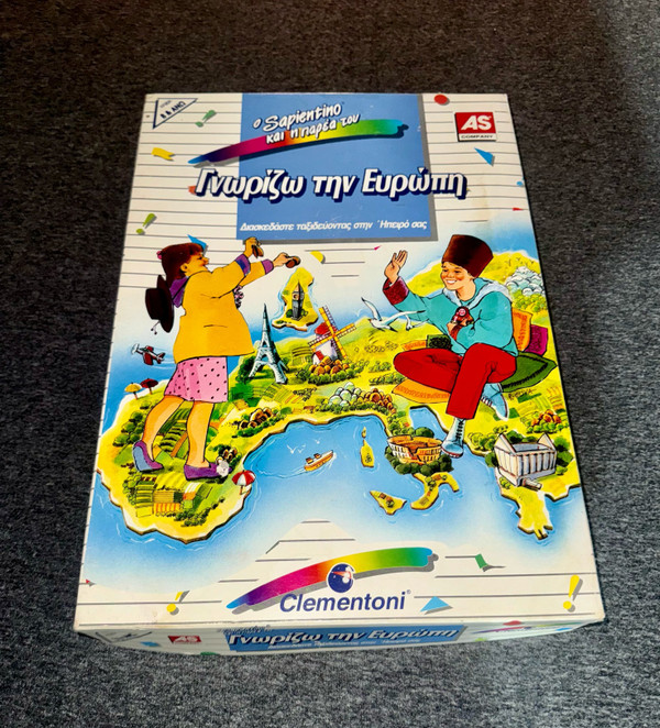 The game Γνωρίζω την ΕυρÏπη is an educational game designed with the help of experts in child psychology, sociology and pedagogy. It belongs to the Sapientino games series. The game teaches children the geography of our continent in the most entertaining way. The two sides of the board show the geophysical and political map of Europe. With the help of the board and using their imagination, the children travel from one place to another, thus getting to know the cities and states they visit. The aim of the game is to be the first to complete your trip to Europe after stopping at the stations and answering the relevant question correctly