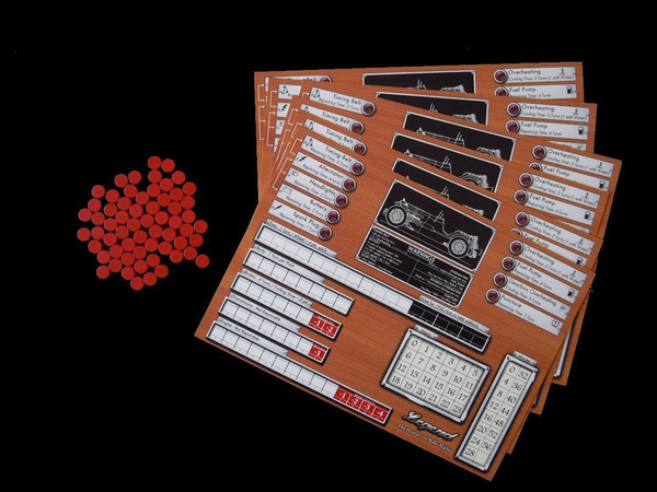 You can use your cockpit board to keep track of time, damage and wear and set speed on your Car Performance Card (provided with basic game).
