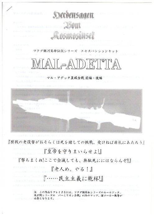 This is a doujin expansion for the Tsukuda Legend of the galactic Heroes system. It is a fan-produced game that was only sold at Game Market and other Japanese shows.